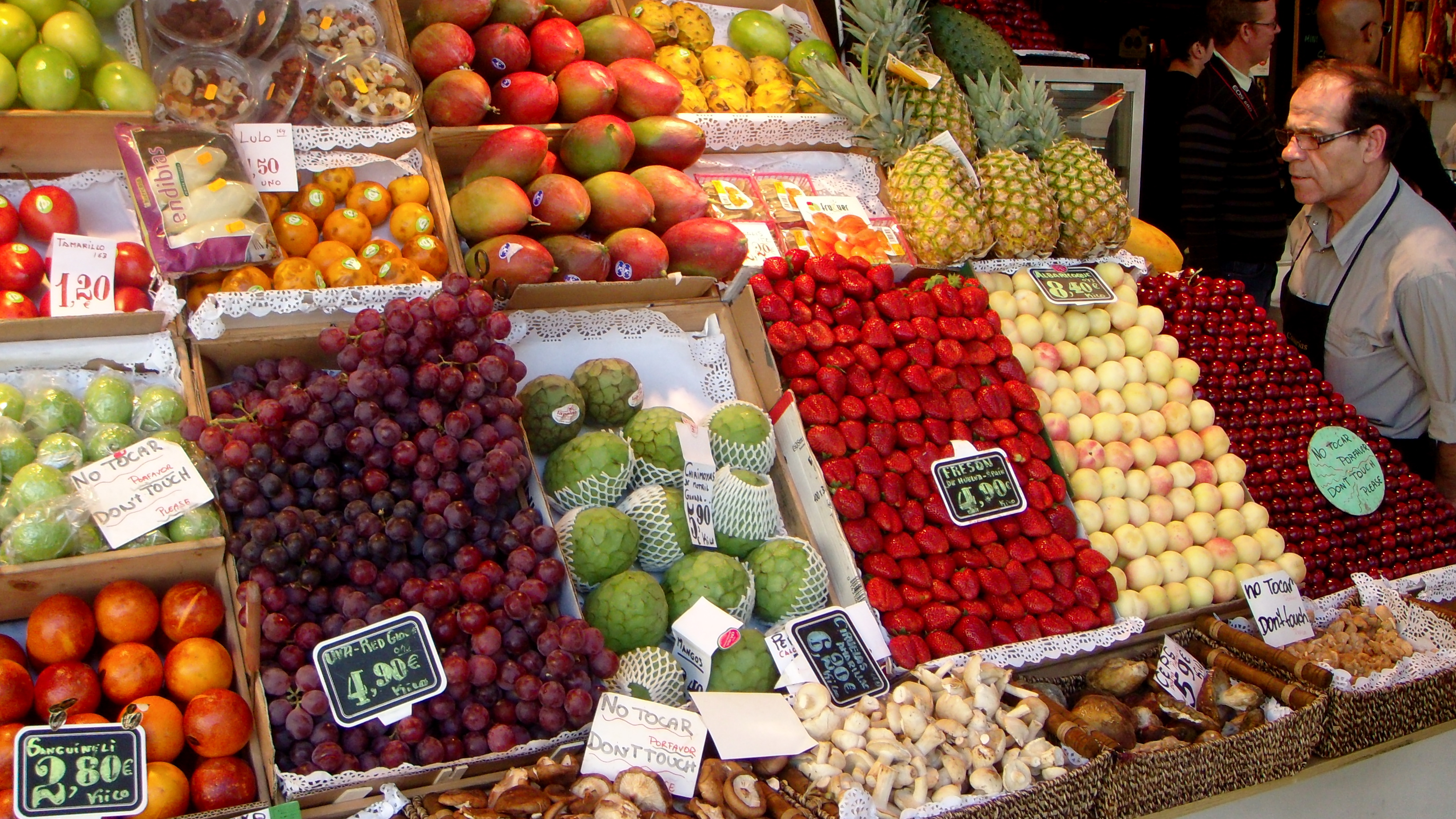 Amid the grays, buffs, rusts and other muted tones of old Madrid, cherry red tends to catch the eye. Exiting Plaza Mayor through the northwest gate, cherry red is what you encounter — actual cherries, truth be told, and plump, gorgeous ones — beckoning from behind the glass walls of always-mobbed Mercado de San Miguel.