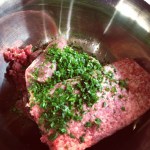 - Parsley, breadcrumbs, eggs. Mixing commences.