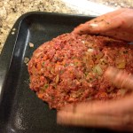 In a large bowl, combine the the beef, pork, eggs, breadcrumbs and parsley. Incorporate the vegetable mixture into the meat, mixing with your hands. (Don’t over-mix.) Turn the meatloaf mixture onto a shallow baking pan, forming it into a mounded oval, about 10 by 5 inches. Spread the remaining 1/3 cup ketchup on the top. Bake in the oven for 1 hour or until the internal temperature reads 155 degrees. Remove from oven and loosely cover with foil. Let the loaf rest for 10 minutes before slicing.
