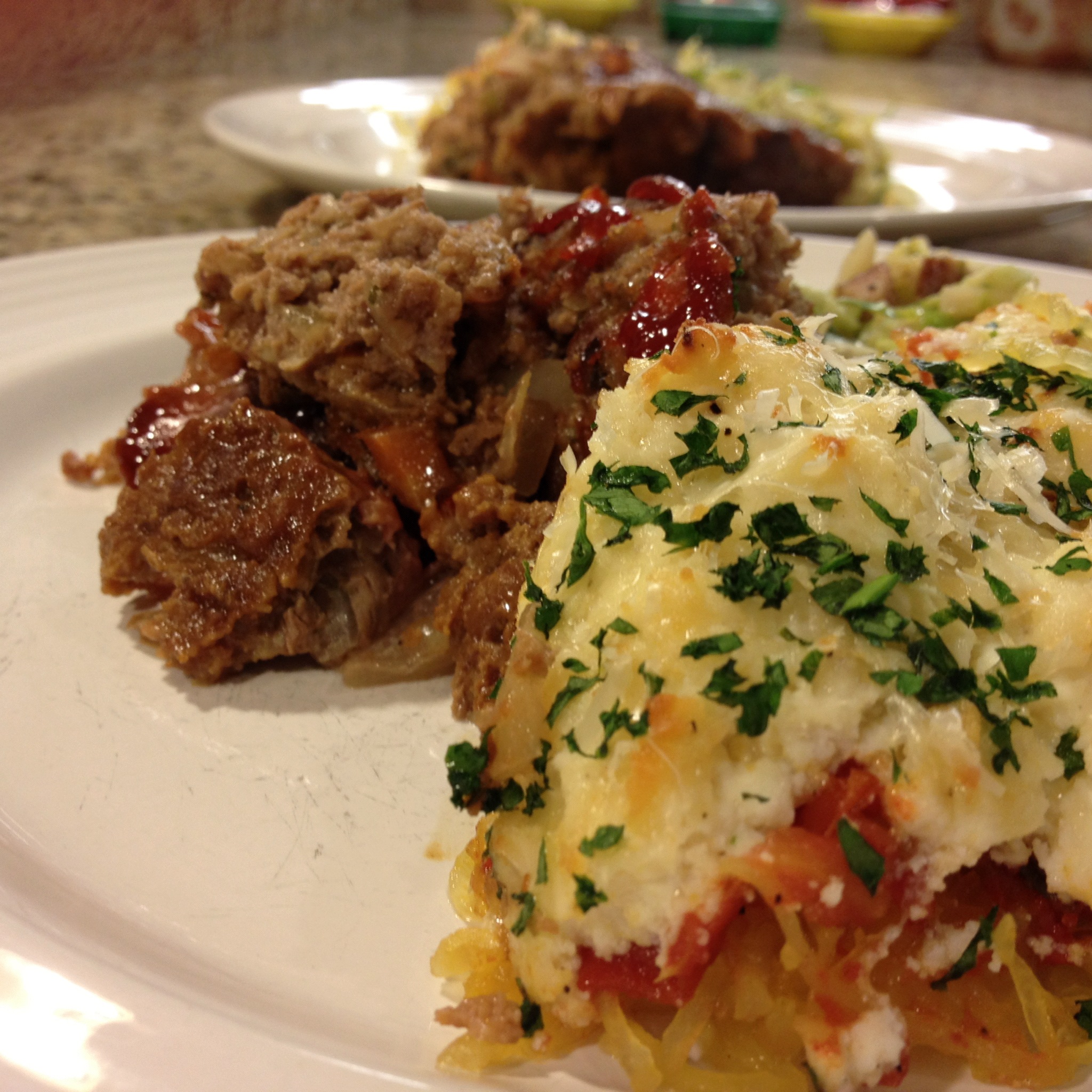 - Comforting meatloaf and spaghetti squash gratin.