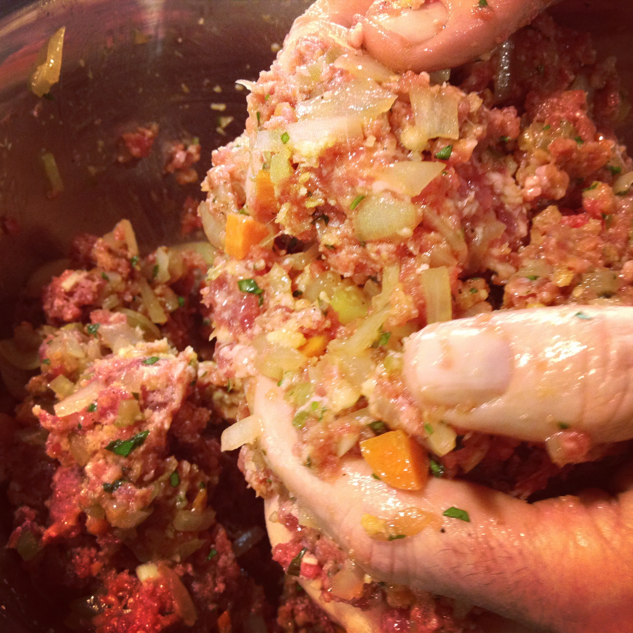 » Hand mixing.