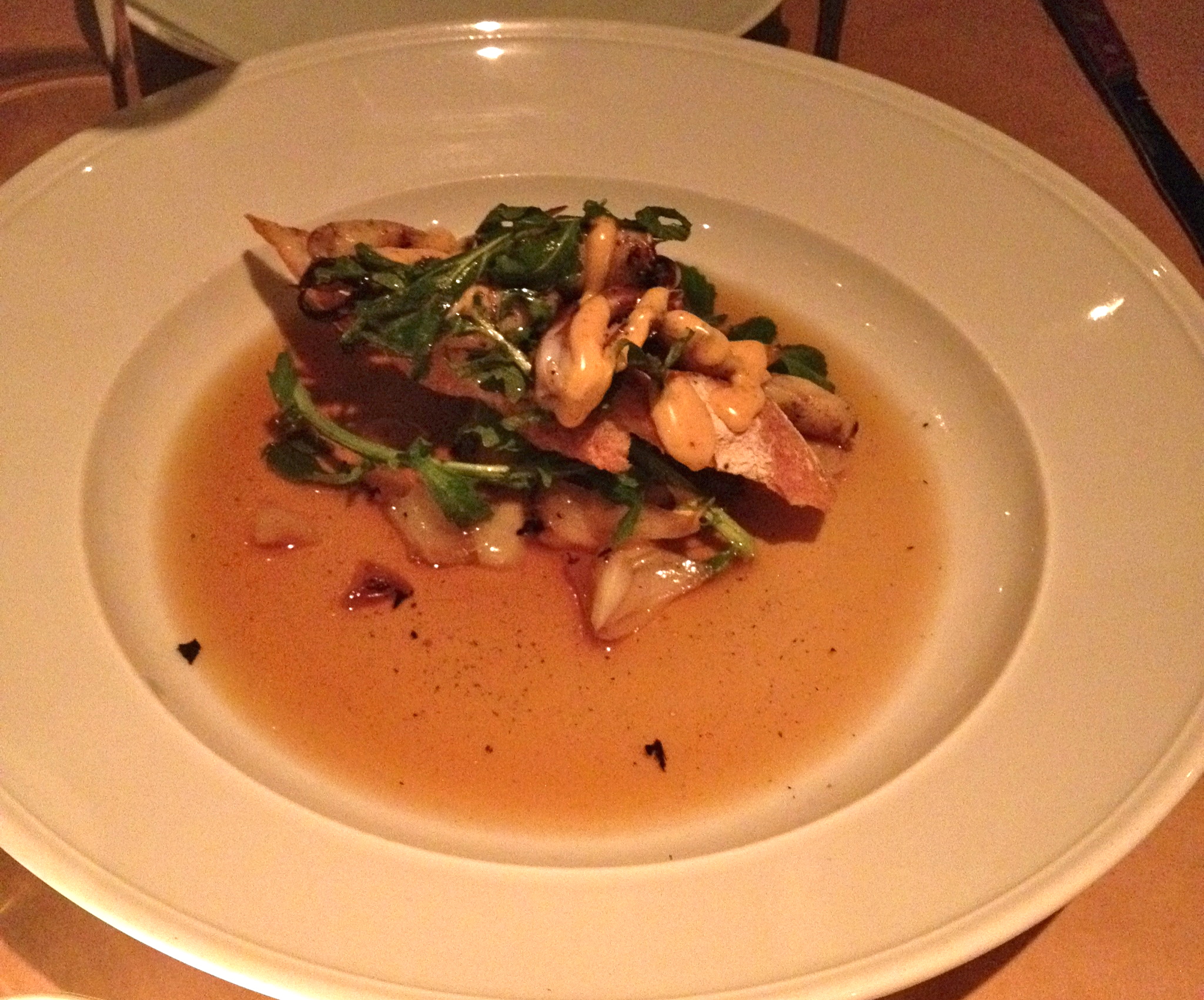 The kitchen is all about fresh, local ingredients with French and Italian notes. Divided into starters, salads, fresh pasta, entrees and of course dessert, the daily changing menu is well rounded with three to five options under each header. We started with Quinalt steelhead caviar — briny medium-sized yellow eggs served with potato croquettes — and grilled Monterey Bay calamari with an irresistibly soppable onion broth. If you’re lucky enough to snag the calamari, order extra bread.