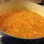 Today the basic ingredients remain the same (chicken thighs, lots of veggies and chicken broth), but there’s always a tweak here and there. One batch he’ll use roux as a thickener, the next it’s barley. (Can you imagine?) At times, he’s rubbed and grilled the chicken first, finishing it in the stew, and other times he’s poached the chicken to make the broth base. Every time he makes it, it’s slightly different, and a little better.