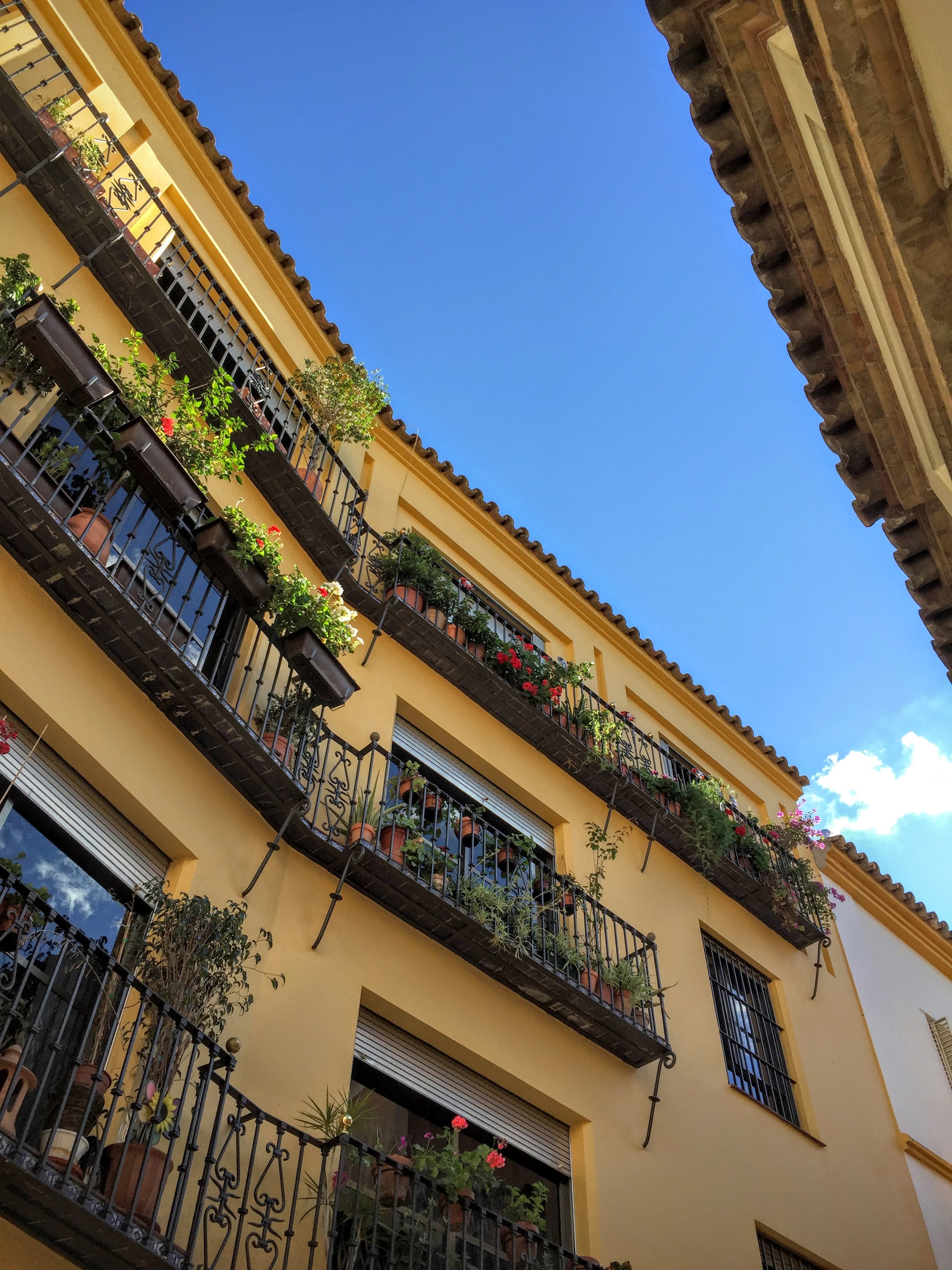 The view from our room onto the adjacent apartment buildings shows how narrow many of the Sevilla streets are.