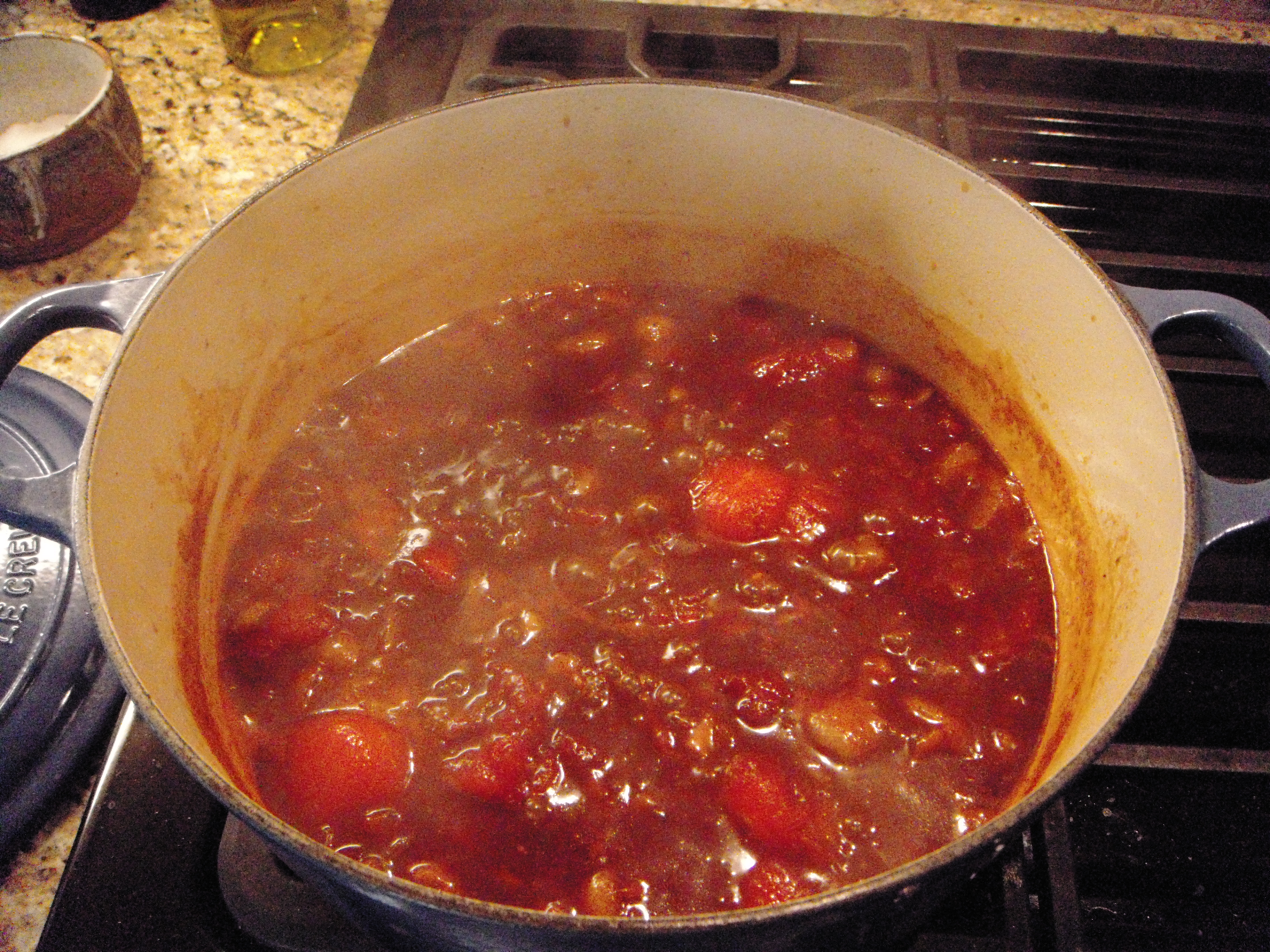 6 to 8 whole, peeled canned tomatoes, hand crushed