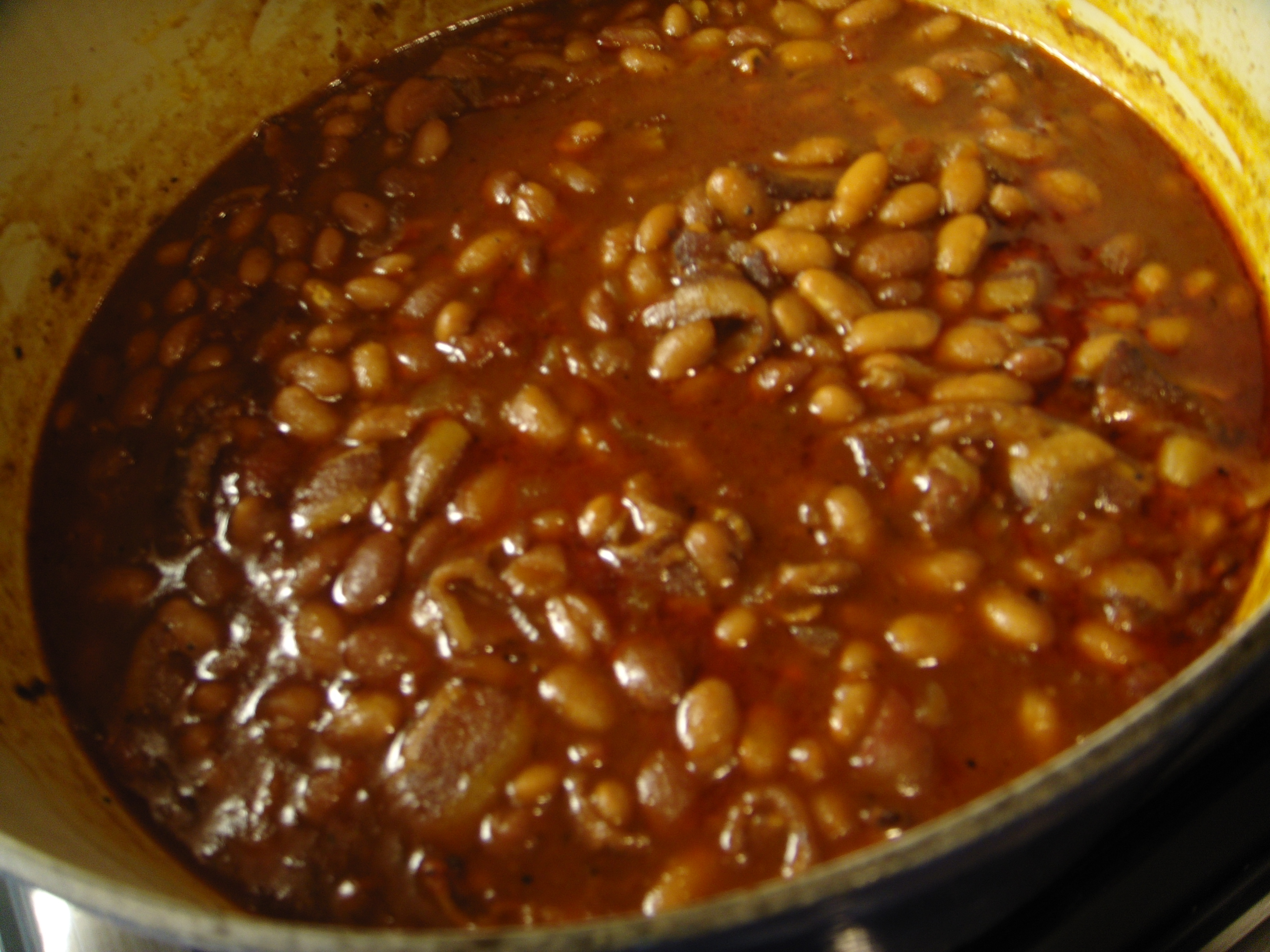The beauty of this recipe is that it can be made ahead, and re-heated either on the stove top or in the oven before serving. In fact, making the beans ahead only intensifies the flavors.