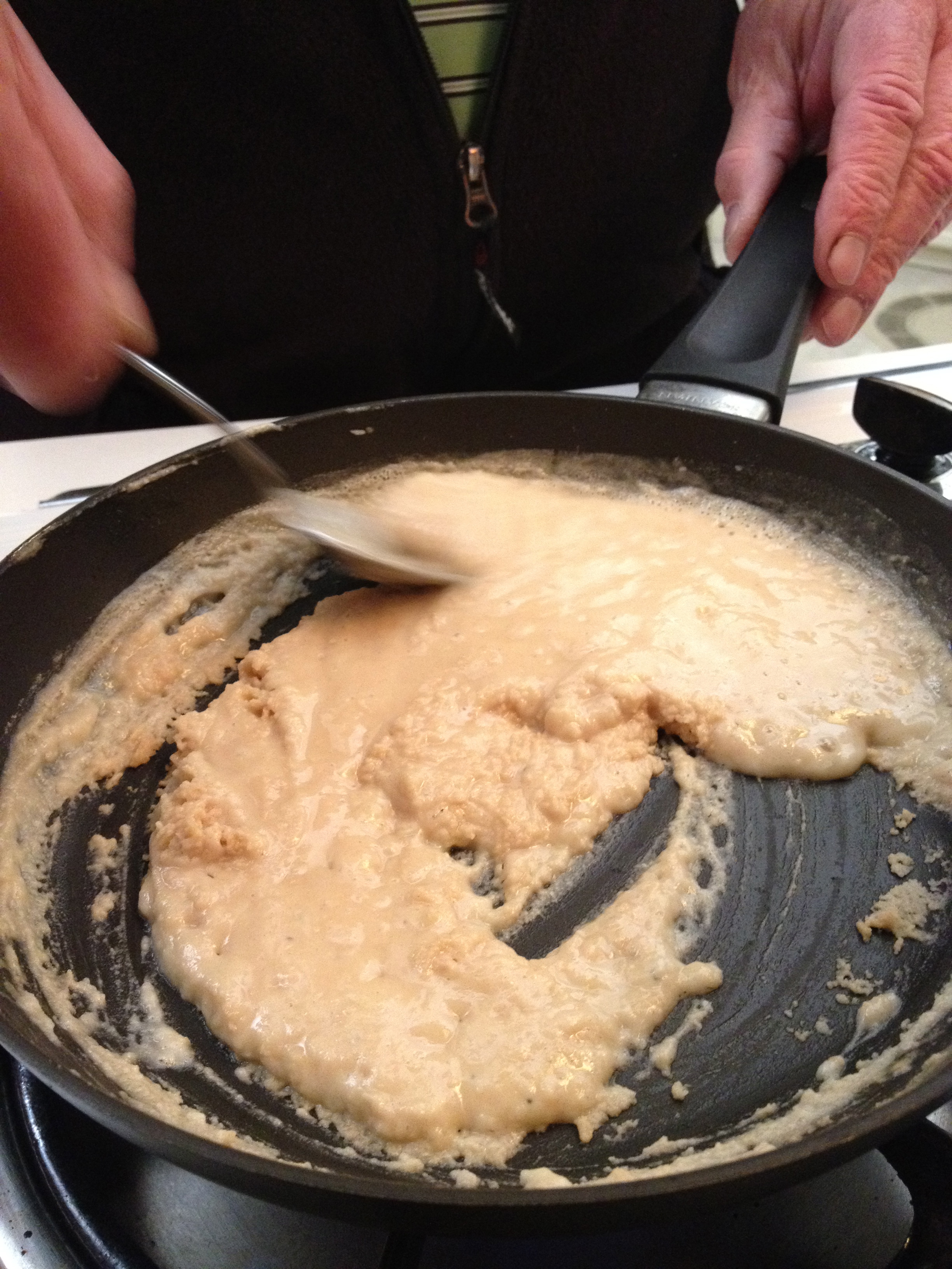 During our annual President’s Day trip to Borrego Springs, I asked Dad to make his version of chile verde, the one I remember from my childhood, the one served for so many years at La Paloma. It tastes the way I’ve always remembered it: simple enough that the flavors of the basic ingredients stand out. It’s also got a lovely glossy texture thanks to a generous helping of roux. Of course, it’s good over a bean burrito, but even better the next morning just in a bowl. And with a homemade tortilla, hot off the griddle, it’s a taste of heaven.