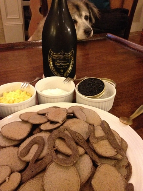 Every year since 1999, J and I have rung in the New Year with our annual tradition of caviar, homemade buckwheat blini and bubbles. (This year, we celebrated with a special bottle of bubbles, a gift from Robb and Dana. Wow!) We remember our families and friends, and toast our good fortune. We are truly grateful.