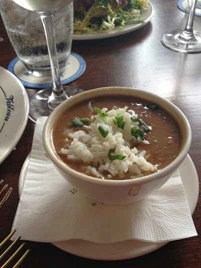 The rest of the morning was spent touring the massive, impressive WWII museum — a must-see for history buffs like Bob. We then headed back to the French Quarter for lunch, landing a table at Tableau, which with its sturdy dark-wood furnishings and contrasting thick white plaster walls exuded a stately Southern charm. The menu featured classic French Creole cooking, and we ordered a variety: Salade Lyonnaise with perfectly oozing egg; fried oyster salad; rich duck and andouille gumbo.