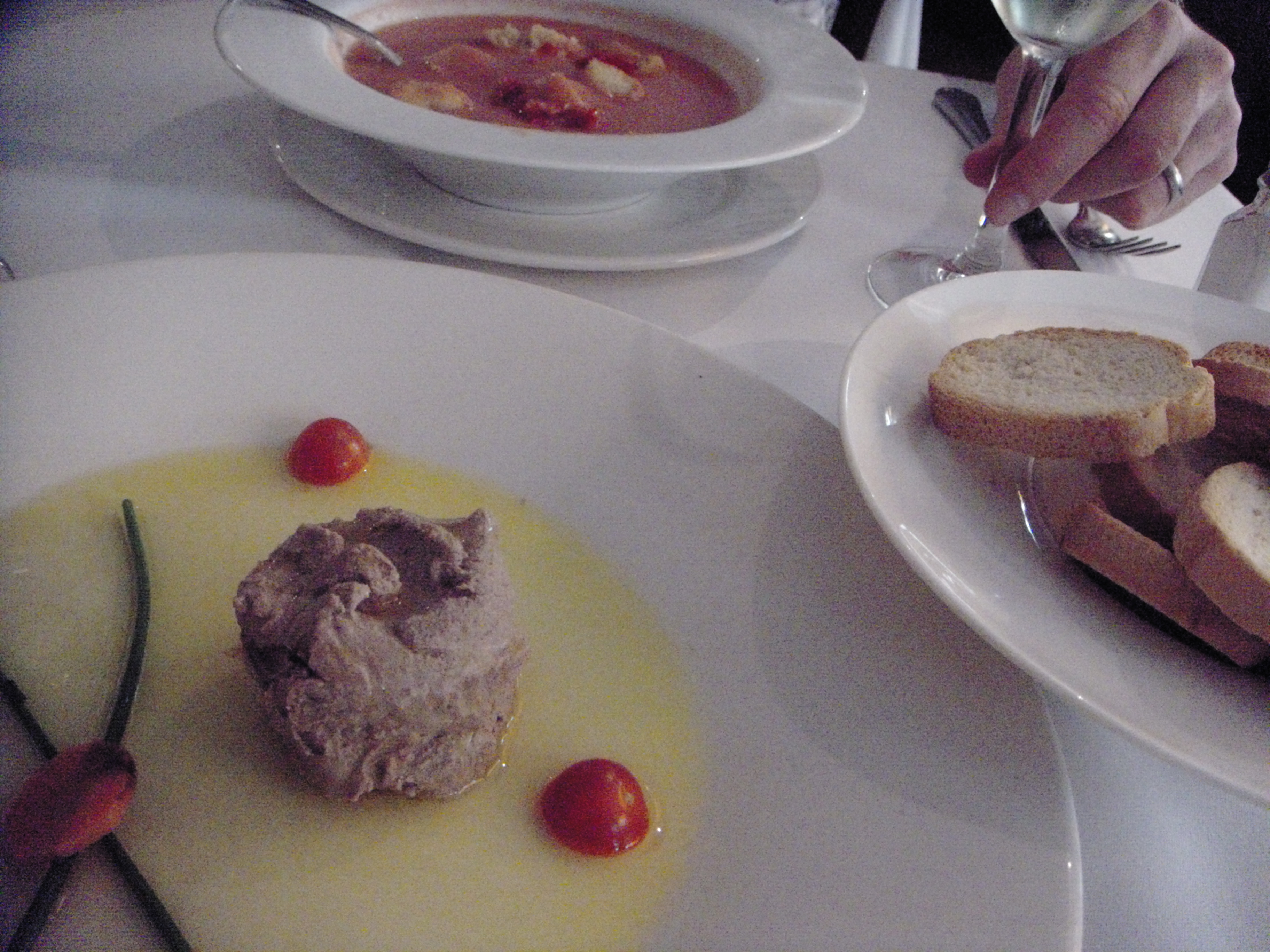 The menu’s hearty Mediterranean and Spanish dishes make ordering a challenge. We started with a refreshing gazpacho laced with minced onions, red bell peppers and crunchy croutons; and a creamy chicken-liver pate enhanced by fruity olive oil. Hot fresh-baked bread did sopping duty as we awaited our entrees. J’s succulent braised pork ribs arrived accompanied by perfectly cooked couscous. My lamb shoulder, falling off the bone and bathed in a earthy pan juices, was complemented by sweet caramelized baby onions. We finished our two rather large plates, but dessert was out of the question — though a rich-looking wedge of chocolate torte sent to neighboring tables flirted with us briefly. Next time.