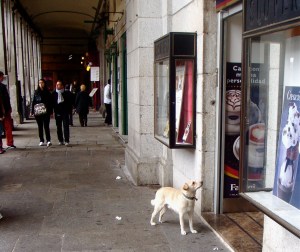 Green space abounds in this metropolis but not in old Madrid. And, as any city dweller knows, when nature calls, los perros answer without hesitation. So along the streets in this part of town, it’s not unusual to see a little guy squatting on the cobblestone until the terrible tether tugs, pulling him off balance. Unable to set anchor for a bit of relief is a great burden.