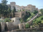 After a couple of hours, the heady combination of hills and holiness got our appetites up, so out we went in search of sustenance. We landed at Restaurant Alcazar, whose terrace perches delicately on an incline. J started with gazpacho, which slanted in the bowl; I had to slurp my espeguettis before they slid off the plate. Frankly, the starters were the best part of the meal, but the fried fish and sauteed pork loin entrees were satisfying enough after an eventful morning, especially accompanied by a refreshing Spanish Rueda.