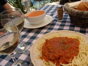True enough. Fortunately, Trattoria Sant Arcangelo served precisely what was needed after a too-long travel day: translucent beef carpaccio, rich tagliatelle Bolognese, risotto fragrant with truffle, pizza al prosciutto e funghi, and silky gnocchi Gorgonzola. It wasn’t Spanish, but no one complained. That long-ago trip to France was a memory and our recent detour through Paris was over, thankfully. After several bottles of wine and a brisk stroll back to the hotel, we were ready for sleep, ready to recharge.