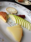 Desserts were chocolate profiteroles for J; bright citrus panna cotta for Zandra; and a cheese board for James and me.