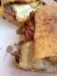 On a recent hot Saturday afternoon, we — Julie, J and I — set out on a walk that would lead us to Bunk Bar on SE Water Street. Bunk has earned a reputation of being the Mecca of Portland’s sandwich seekers, and that reputation has catapulted into the national spotlight through coverage on the Food Network and the Travel Channel. Bunk Bar, an outpost of the original, serves the same sandwiches but is open later, has a full bar and a music stage. Though we arrived in the afternoon, Bunk Bar still had a lively crowd and we barely avoided a mini rush that lined up after us. I grabbed a booth by the window, while Julie and J placed our order: three pork belly Cubano sandwiches and mole tots.